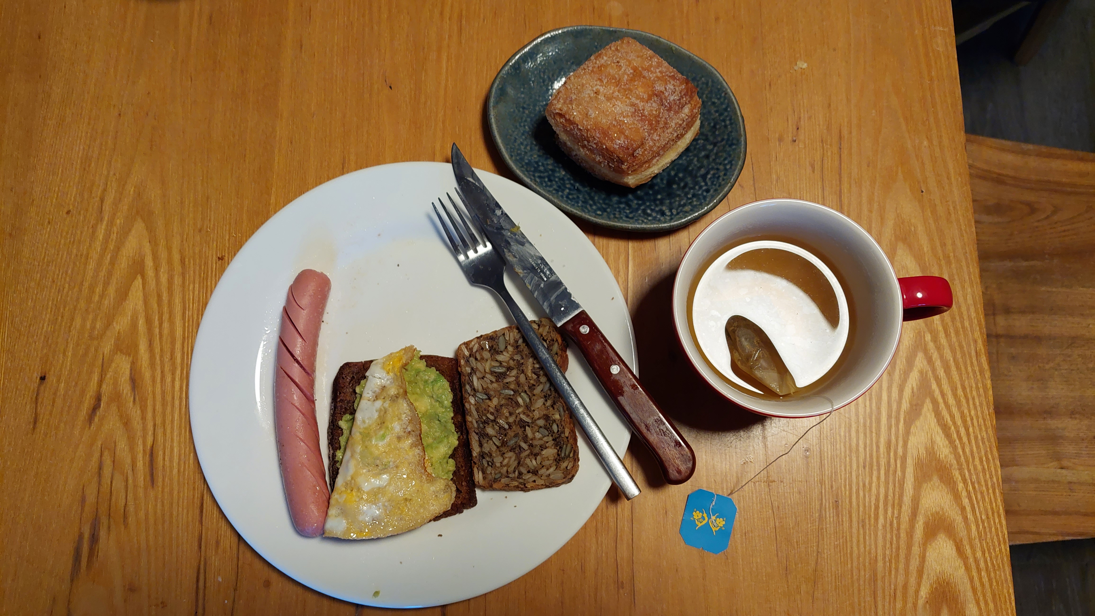 전날 먹은 감자국이 한 끼 먹기에는 애매하게 남아서 물을 추가해서 라면을 끓였다. 이런 경우 국의 맛이 있기 때문에 수프는 반의 반 정도만 넣어서 끓여도 충분하다. 여기 인스턴트 라면의 면발이 참 빈약하기 짝이 없어서 이것저것 넣고 끓이면 양도 좀 늘고 먹을만하다. 고추 장아찌. 차는 은색 포장의 얼그레이. 그리고 라트비아 자랑인 카르부떼 캬라멜.