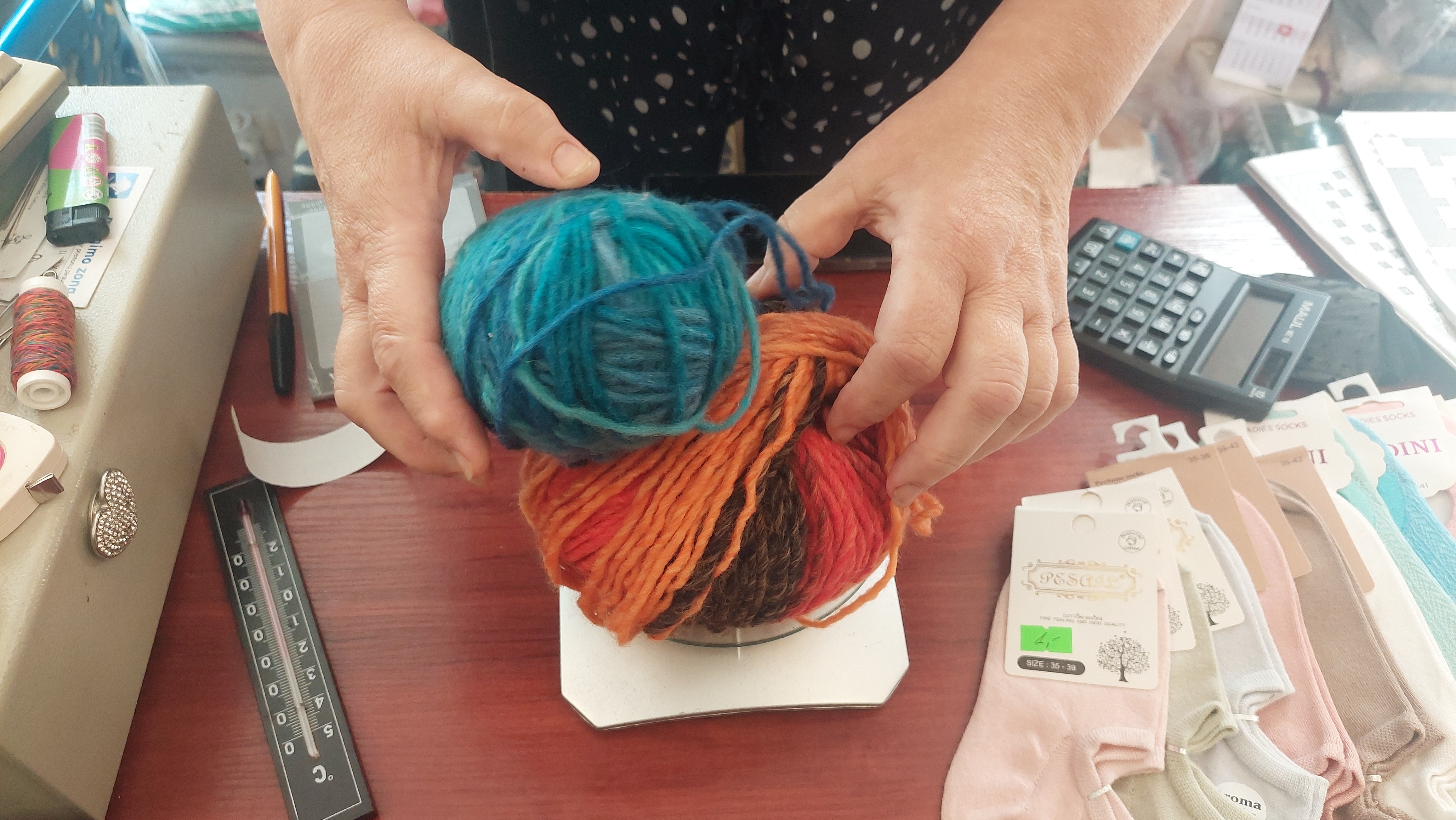 띠지가 있는 실은 정가를 받지만 이 가게는 이런저런 잡화와 함께 뭉텅이 털실들을 무게로 재어서 파는 가게이다. 이 가게 옆에는 오손도손 모여서 함께 뜨개질을 하는 진정한 실의 집도 있지만 같은 색 실이 대량으로 필요하지 않은 이상은 이런 상점이 유용할 때도 있다. 이런 가게는 빌니우스에서도 점점 없어지고 있는 많은 것들 중 하나이다. 때마다 팔각과 말린 고추를 사러 들렀던 저울 양념집도 얼마 전에 가니 문을 닫았다.