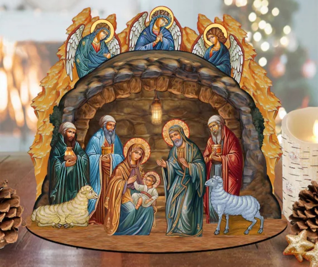 사실 마가복음을 제외한 3개의 복음서에 예수 탄생 이야기가 기록되어 있지만 후대의 말구유 묘사에 절대적인 레퍼런스가 될 만한 구체적인 설명은 없다. '목자들이 밤에 밖에서 양 떼를 지키더니'라는 부분이 있지만 양 떼 속에 양이 몇 마리인지는 중요하지도 않을뿐더러 알 수 없듯이... 하지만 복음서 전체를 읽다보면 잡히는 대략적인 가이드라인은 있다. 강보에 싸여 구유에 누워있는 아기 예수와 그를 지켜보는 요셉과 마리아. 대천사들 그리고 베들레헴의 별을 따라 구유까지 도착하는 동방박사들과 간혹 그들이 타고 왔다는 낙타, 목자와 양, 나귀나 소 같은 조연 동물들. 그리고 베들레헴의 별.
