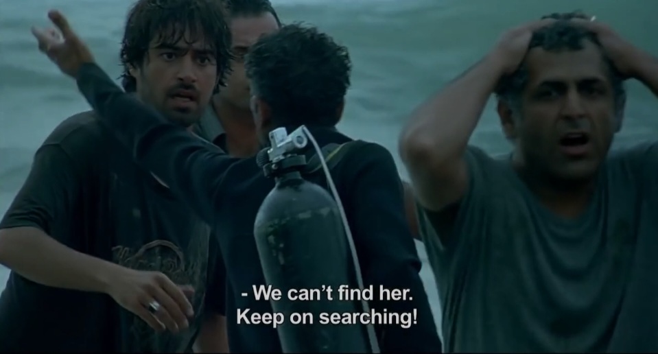 영화 초반에 많은 등장인물들이 뒤엉켜서 동시다발적으로 대사를 쏟아내기 때문에 이란 이름도 배우들의 얼굴도 익숙하지 않은 상태에서 누가 누군지 중반까지 헷갈린다. 그리고 대충 그들에 대해서 알았다 싶을 즈음에 엘리는 사라지고 엘리가 누구였고 왜 그곳에 그들과 함께 있었는지 모두 궁금해하기 시작한다. 엘리에 대해서 관객과 등장인물들이 동시에 알아간다는 것이 묘한 긴장감을 유발한다. 뭔가를 아는듯하면서도 속시원히 말하길 주저하는 세피데는 답답하지만 사라진 엘리와 남은 세피데 모두 자기 자리를 찾지 못하는 하나의 인물 같기도 하다.