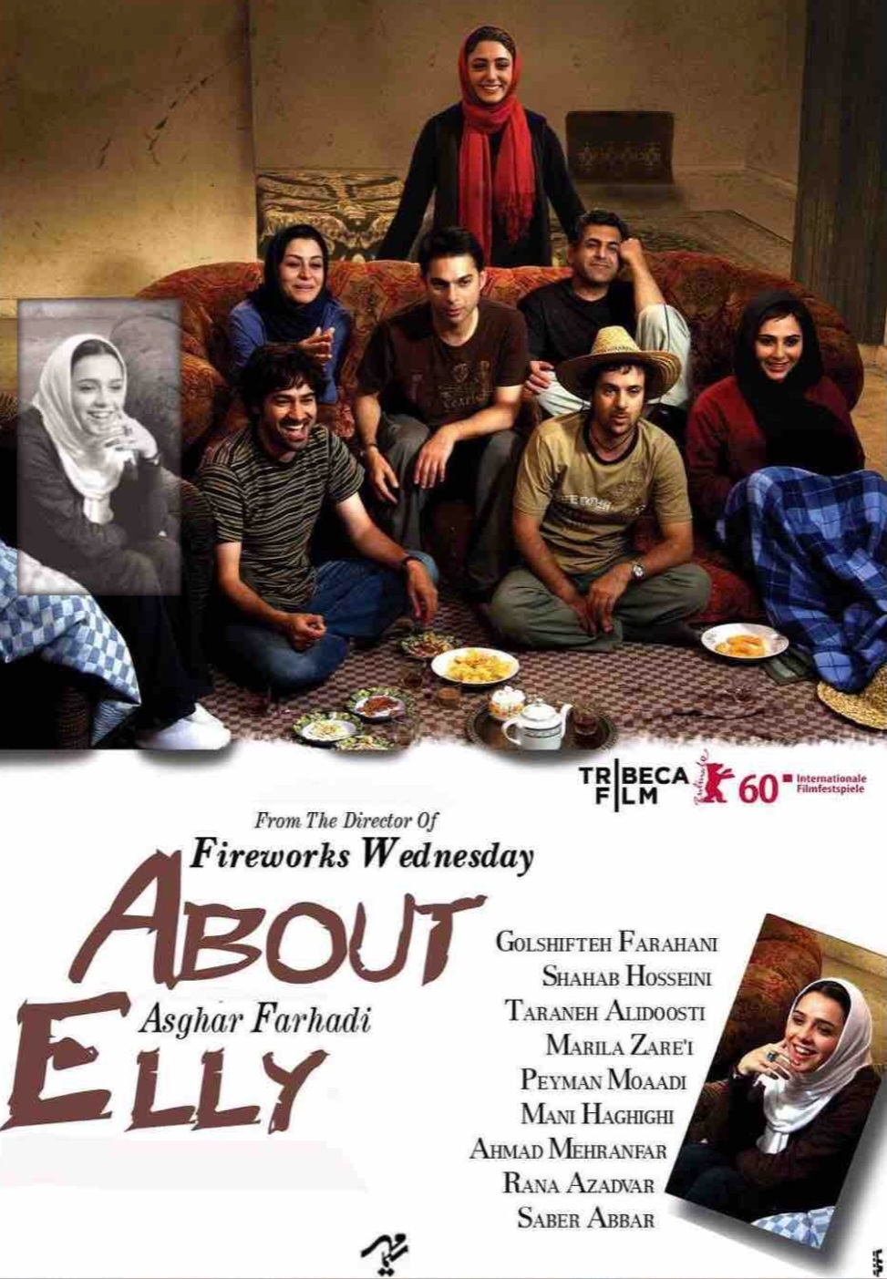 유치원 선생님 엘리(Taraneh Alidoosti)는 극 중 유일한 미혼이고 아픈 엄마에게 자주 전화를 해서 계속 안심시킨다. 뭔가 근심에 차있고 놀러 왔지만 노는 기분이 아니며 하루만 놀고 가겠다는 엘리를 세피데는 극구 말린다. 동창들은 아흐마드와 엘리를 엮어주려는 분위기를 만들며 짓궂은 농담에 키득거리기에 여념이 없고 엘리는 그것이 내심 불편하지만 불편한 기색을 대놓고 드러내진 못한다.